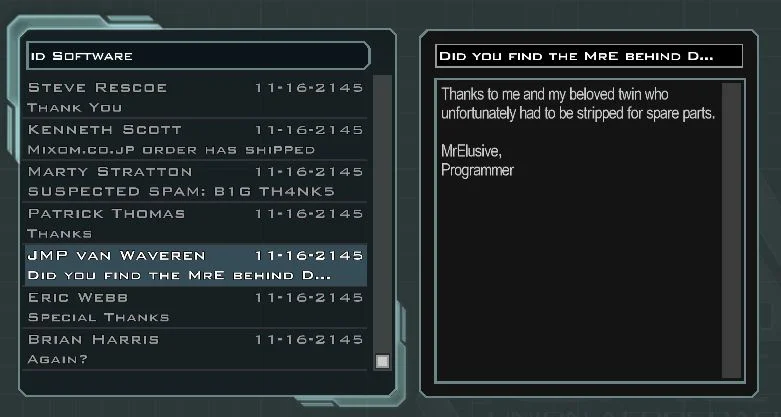 All these people put an extraordinary amount of effort into idTech4.x. JP's special PDA thanks at the end of the game always sticks with me.