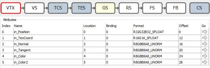 So far we've covered the Vertex Shader and Fragment Shader stages. The other programmable stages, tessellation, geometry, and compute are not used in VkNeo. Let's return to idRenderProgManager::Init and look at setting up the Vertex Input stage of the pipeline as accomplished through CreateVertexDescriptions.